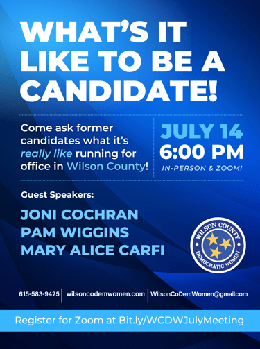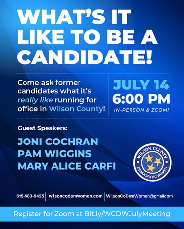 Join us online or in-person to learn more about what it's like to run for office IN Wilson County! Bring your questions!